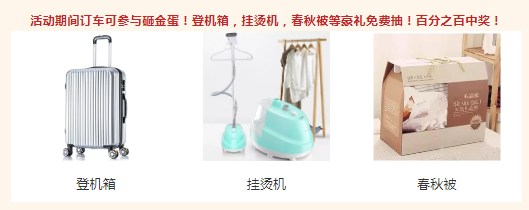 活动期间订车可参与砸金蛋!登机箱,挂烫机,春秋被等豪礼免费抽!百分之百中奖!